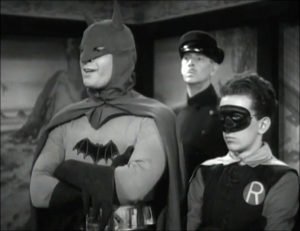 Resaltemos también la curiosa insistencia de acabar los cliffhangers con los delincuentes arrojando a Batman desde lo alto de algún sitio. Y que el resumen del episodio siguiente, en esos casos, se ofrece sin mencionar al personaje, con Robin como única figura, para hacer creer al ingenuo público que el héroe ha muerto.