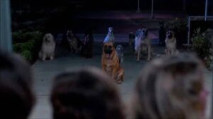 Las primeras escenas de ataques de los animales son bastante frustrantes, dado lo torpe de su planificación. Luego, desde distintas partes, comienzan a oírse aullidos de perros que inquietan a todos, salvo al espectador, dado que son grabaciones de archivo que se repiten una y otra vez, distorsionadas para conferirles eco, por lo cual no se identifican como sonidos amenazadores de animales, sino que parecen algo de origen artificial, inclusive una sirena de fábrica.