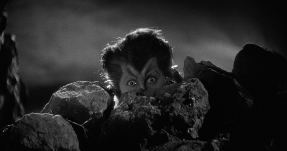 Con respecto a la definición de las constantes licantrópicas, como decíamos, aún se bosquejan orientaciones idiosincráticas, así, tras la conversión, el personaje todavía retiene bastantes componentes humanos: después de la primera transformación, el hombre lobo sale de su residencia, no sin antes proveerse de una bufanda y una gorrita, que hace frío; cuando va a atacar a su prometida forcejea con una puerta acristalada, en lugar de embestir directamente contra ella (nos referimos a la puerta, no a la prometida); al final, inclusive desgranará algunas palabras, mientras aún ofrece la apariencia de bestia. El excelente maquillaje, debido a Jack Pierce, brinda pocos elementos sobre el rostro del actor, Henry Hull, entonces una estrella que demandó que pudiera ser reconocido por los espectadores[4] ―y que ofrece cierto parecido con el que, sesenta años después, exhibirá Jack Nicholson en la tonta Lobo―. Míticas son hoy día las secuencias de transformación, en especial la primera, la cual, mientras Hull va caminando y pasando por detrás de varias columnas, muestra el proceso de mutación por medio de los brillantes efectos visuales desarrollados por John P. Fulton.