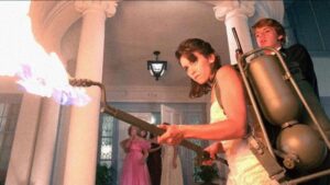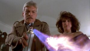 Así, Dekker compone un pastiche que mezcla ciencia ficción, terror y comedia, en un filme desinhibido que busca, simplemente, ser divertido. Arranca en el interior de una nave espacial, con los extraterrestres parloteando, mientras aparecen subtítulos en un idioma alienígena. A continuación, la acción se traslada a la Tierra y a 1959, en esas escenas rodadas en blanco y negro ya mencionadas. Dejando a un margen el psicópata con un hacha, esos momentos recuerdan enormemente al filme The Blob [tv/dvd: La masa devoradora, Irvin S. Yeaworth Jr., 1958], aunque el uso del blanco y negro remite más a It Came from Outer Space [vd/dvd: Llegó del más allá; dvd: Vinieron del espacio; tv/dvd: Venidos del espacio, Jack Arnold, 1953].