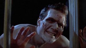 - En la pared de un retrete hay una pintada que dice «The Monster Squad Rules!». The Monster Squad sería la siguiente película de Fred Dekker.