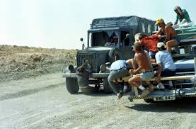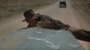 • La escena en la cual Indiana cae por delante del camión, pasa por debajo y da de nuevo la vuelta por arriba es un homenaje a una de las míticas escenas de La diligencia (Stagecoach, John Ford, 1939), donde el especialista y actor Yakima Canutt realizaba el mismo efecto, y luego se ha repetido en más ocasiones. Para efectuarlo, el camión se construyó con un hueco inferior superior al normal, y se excavó un carril en el suelo. Además, el plano se rodó a veinte imágenes por segundo, en lugar de a las habituales veinticuatro; de ese modo, el vehículo circulaba a una velocidad más lenta, y en la proyección semejaba más rápido.