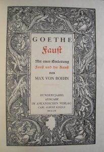 El Fausto (Faust. Eine Tragödie, 1887) de Johann Wolfgang von Goethe está basado en una leyenda tradicional germana, a su vez inspirada en un personaje real, Johann Georg Faust (ca. 1480-1540), un alquimista, astrólogo y mago del Renacimiento, del que, en realidad, se conocen pocos hechos concretos. El de la leyenda, que es el que nos interesa ahora, estaba poco contento con el curso de su vida, aun cuando había logrado el éxito material; impulsado, pues, por esa insatisfacción, hizo un pacto con el diablo, entregando su alma a cambio de placeres mundanos y un gran conocimiento.