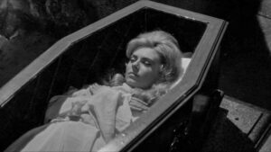 Imagino que la decisión de rodarla en blanco y negro fue, por un lado, por motivos de presupuesto, y por otro, para seguir la corriente de previas cintas de terror italianas, como la exitosa, y excepcional, La máscara del demonio (La maschera del demonio, Mario Bava, 1960). Viendo Horror (1963) —meditadísimo título, desde luego—, lo primero que viene a la mente es el ciclo de películas que en 1960 inició el realizador norteamericano Roger Corman inspirado en la obra de Edgar Allan Poe, aunque este rodara en color. Ese grupo fílmico arrancó con La caída de la casa Usher (House of Usher), y precisamente la presente también toma como base el estupendo relato, pero de forma un tanto lejana, siendo, en realidad solo los diez últimos minutos de la película. Algunas fuentes acreditan que la cinta también se inspira, amén de en «The Fall of the House of Usher» (Burton’s Gentleman’s Magazine, septiembre de 1839), en otras dos historias más del autor de Boston, «Un cuento de las Montañas Escabrosas» («A Tale of the Ragged Mountains», Godey’s Lady’s Book, abril de 1944) y «Conversación con una momia» («Some Words with a Mummy». American Review: A Whig Journal, abril de 1945). De la primera escogería, en exclusiva, la idea del mesmerismo, y de la segunda soy incapaz de encontrar el más mínimo parecido.