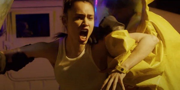 Como es habitual en algunas de estas películas, la trama sigue dos vías paralelas. Por un lado tenemos el entorno en el que se ambienta, ese futuro excesivamente cercano, con la epidemia mutada y más mortífera, el toque de queda, el ejército disparando a aquellos que lo violan, la gente retenida en las casas, las calles vacías y con signos de ruina… Esto es lo mejor del film. Lo otro es la historia que se desarrolla, y que es catastrófica, carente del menor interés. Tenemos al protagonista, ese repartidor vitalista que comienza a desarrollar una relación con una chica vía comunicación. También tiene relación con un chaval en silla de ruedas, y a quien el confinamiento no le viene de nuevo. Y una familia, encabezada por Demi Moore, que es rica pero que se preocupa de los necesitados.