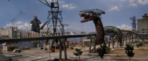 Llegó un punto en el cual las películas de Godzilla habían alcanzado una fase en la cual todo consistía en enfrentar al monstruo tripudo con un oponente tras otro, a cuál más imaginativo en su diseño. Con esta Invasión extraterrestre (Kaijû sôshingeki, 1968) se intentó variar la óptica, brindando a una civilización alienígena que pretende tomar el control de la Tierra, para lo cual hace uso de los monstruos Godzilla, Mothra, Rodan, King Ghidorah, Anguirus, Minya, Spiega, Baragon, Gorosaurus, Manda y Varan y los lanza contra las distintas ciudades del mundo (Godzilla atacará Nueva York, por ejemplo). Ambientada en un año 2000 en el cual los vuelos a la Luna son costumbre, el héroe es el capitán de un cohete que viaja a nuestro satélite, y que al regreso se encuentra el percal, habiendo de combatir tanto contra los monstruos como contra los extraterrestres.