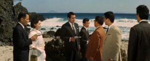 No conviene olvidar la excelente escena de tiroteo a la orilla del mar, evidente influencia del cine bondiano de la época, donde terrestres y extraterrestres, vestidos con pulcros trajes con corbata, intercambian disparos, unos con pistolas normales, los otros con armas de rayos. Otros elementos sugerentes aparecen, como que los invasores (todas féminas) toman apariencia humana (japonesa, en concreto), pero cuando son destruidos recuperan su forma original, una especie de culebras metálicas que se ocultan en el interior de las rocas, pues solo logran vivir a muy altas temperaturas.
