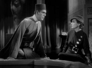La perezosa estructura copiada de Drácula, de esa manera, se ve así avivada por el vínculo que se establece entre el egipcio milenario revivido y la joven muchacha mestiza, desconocedora, al inicio, de su legado, pues es la reencarnación de Ankh-es-en-amon, una princesa que fue amante de Imhotep en aquel remoto pasado. Ahora, sin embargo, Helen, en cuanto ve al hombre de rostro apergaminado siente un misterioso lazo con él. Imhotep puede controlarla desde la distancia, del mismo modo que Svengali lo hacía con Trilby en la fascinante Svengali (Svengali, Archie Mayo, 1931). De este modo, Imhotep intentará arrebatar a Helen a los científicos que la protegen, tal como hacían los héroes de Drácula con Mina[5]. Los encuentros entre Ardath Bey y Helen Grosvenor se plantean, en realidad, como el reencuentro de dos antiguos amantes, en el que aquél, siempre consciente de su dual personalidad como Imhotep, hace rememorar en ella su verdadera identidad como Ankh-es-en-amon.