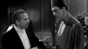 Todo ello lo interconectó por medio de una estructura argumental heredera de su previo Drácula, donde muchas de las situaciones disponen de sus homólogas. Y también heredó de Drácula la secuencia de créditos acompañada por la música de El lago de los cisnes de Tchaikovsky[4]. Téngase en cuenta que, en los inicios del sonoro, se tardó algunos años en implantar el uso de la música como acompañamiento atmosférico a las imágenes, y que esta solo se empleaba en los créditos iniciales y finales. Aquí, al margen de ello, aparecen apenas unos escasos compases ilustrados mediante melodías, aunque la escena cumbre, significativamente, está rodada en un casi absoluto silencio, elemento sobre el que después nos extenderemos.