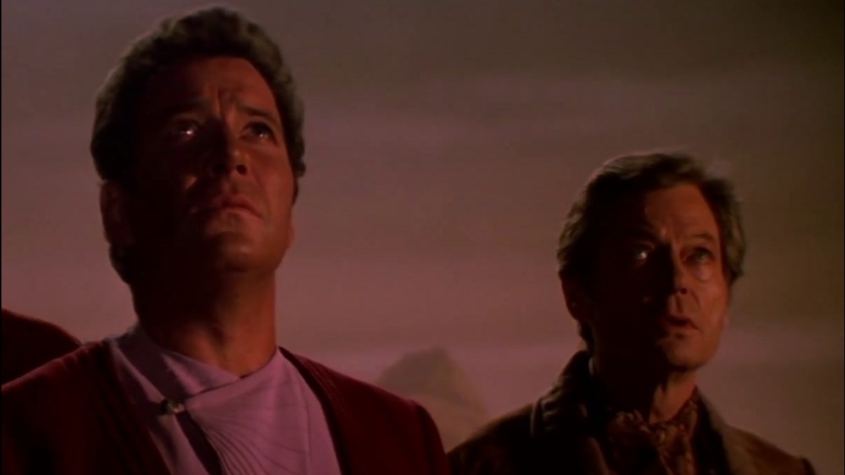 Pasando al cometido de Leonard Nimoy como director, es una lástima que Nicholas Meyer rechazase la invitación de dirigir esta película también; es una lástima que ni siquiera un realizador de recursos tan romos como James Goldstone tampoco estuviese disponible. Fue una pésima decisión, a nuestro juicio, otorgar créditos de realizador a Nimoy, cuando se muestra tan inmaduro e incapaz en un cometido que le viene en exceso grande. El resto de su carrera como director demuestra a las claras que si Leonard Nimoy fue un actor algo mejor de lo que se le suele valorar (más bien cabría calificarlo de acomodaticio, al igual que hizo William Shatner), como narrador visual carece de la mirada precisa para dar perspectiva a una historia. Una cinta con tanta “marcha” como la presente aparece agarrotada, fría, plúmbea, sin dinámica en sus escenas de acción, sin calado en sus escenas de introspección, sin chispa en sus escenas de humor. Y cuando existen planos que superan eso, como el magnífico “frente a frente” de la Enterprise con la nave klingon, es más debido a un acierto de los expertos en efectos especiales que en la labor de Nimoy. De hecho, éste consigue salir un tanto airoso de su cometido dado el espléndido soporte que se le dispensa en diversas áreas, como la excelente fotografía, la magnífica música del por lo general irregular James Horner, los efectos especiales de primer orden y unos personajes con química que captan el interés del espectador por encima de las circunstancias sobre las cuales se les hace discurrir.