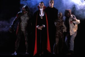 En cuanto a los actores que dan vida (o no vida) a los monstruos, hay que resaltar que la momia y la criatura de la Laguna Negra son comparsas. El hombre lobo, en su condición monstruosa, también lo es, pero en su parte humana es la típica víctima torturada que puso de moda la Universal (y también Paul Naschy). Duncan Regehr como el conde Drácula transmite elegancia y presencia a su personaje, aunque lo cierto es que parece un tanto macarra paseándose con cartuchos de dinamita en la mano. Lo mejor, desde luego, en ese aspecto, es el monstruo de Frankenstein al que encarna Tom Noonan, que transmite humanidad a un montón de trozos de carne muerta ensamblada. Noonan, que mide 1,96 metros, tiene el físico para crear una criatura impresionante, pero logra transferir matices emotivos a su encarnación. El actor ha incorporado infinidad de personajes, pero resalta como el Destripador en El último gran héroe (Last Action Hero, John McTiernan, 1993), lo que da prueba de sus medidas interpretativas.